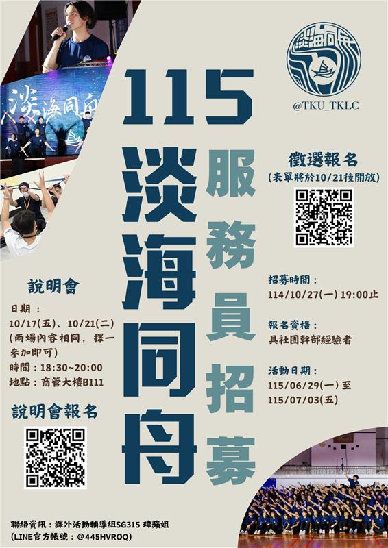 115淡海同舟服務員招募中💁🏼 (10/17五、10/21二)